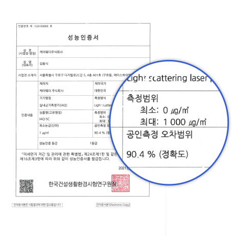 환경부 1등급 성능 인증을 획득