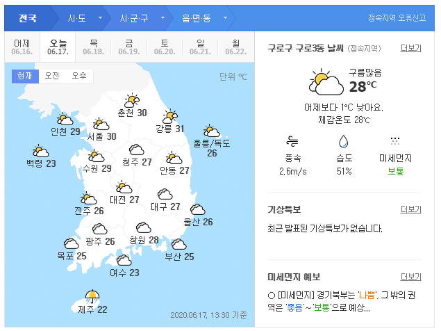 네이트 포털 날씨정보 제공